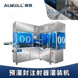 真空高粘物料灌裝設備 :該設備是我司專門針對塑料注射器和預充式針管設計的自動化灌裝封口機。能實現全自動上管、離心式理管,灌裝、旋帽,且可對接燈檢、滅菌擺盤、加桿、貼標、檢重、枕式包裝機等組成全自動流水線。整機伺服控制,結構穩定,適用于多種規格的注射器產品,適用于生理鹽水、氯化鈉、幾丁糖、牙科凝膠等物料的灌裝,廣泛應用于各種生物制藥、牙科等行業。